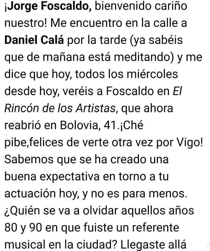 Como suele decirse... "los tiempos nunca fueron buenos para la lírica", pero yo me siento muy satisfecho de haber contribuído a que en Vigo tuviera "un lugar especial" la música en vivo. Gracias a todos, de corazón..!