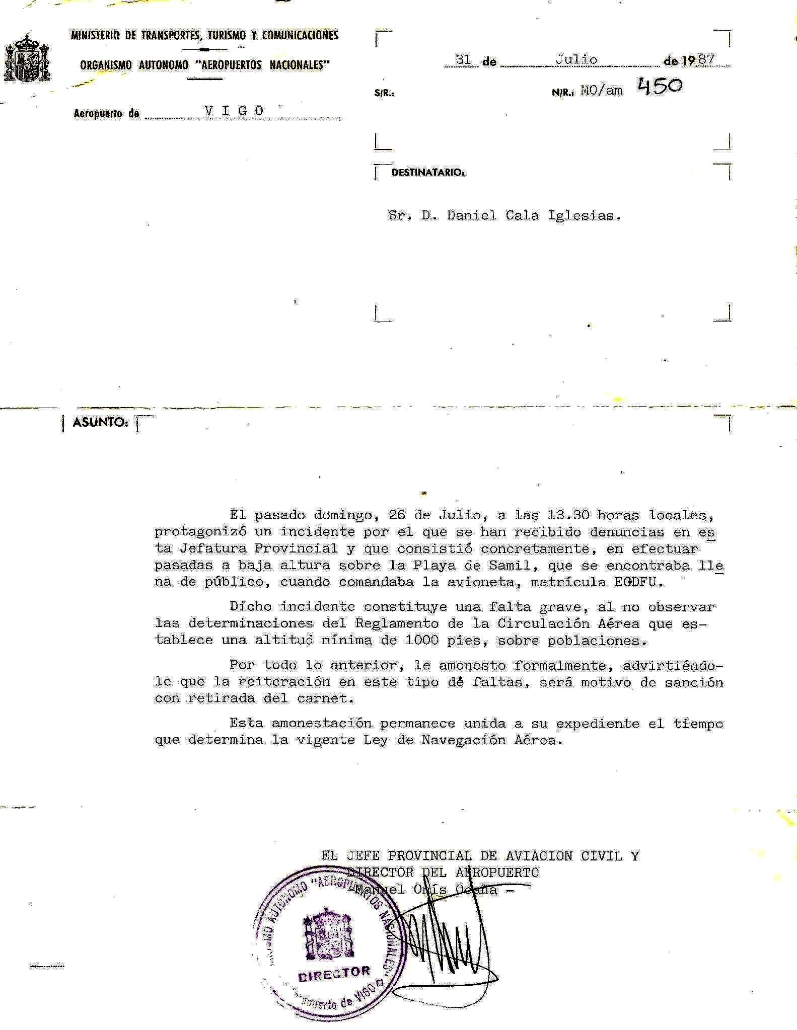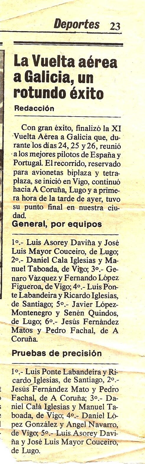 Al poco tiempo de estar en Vigo, me arrimé al Aeropuerto con intensiones de averiguar si podía seguir haciendo paracaidismo, pero me encontré con gente del Aero Club y cuando quise acordar, estaba haciendo el curso de Piloto Privado... Volar sobre las Rías Gallegas es una gozada y me prendí a esta actividad, al punto, que hice muchísimas horas de vuelo e incluso durante un tiempo me encargué de la sección de vuelo, promocionando cursos, campeonatos, tirando paracaidistas, etc