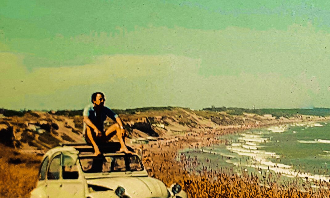 Como ya me dedicaba a la fotografía, tenía un buen equipo con teleobjetivo, filtros y flash... así que lo junté con la Vespa y cambié todo por un Fiat 600 del 64. color azul, con puerta que se abría por delante... Yo tenía 19 años y ya trabajaba... así que lo pinté de blanco, cambié tapizado, le puse "super sonido", Volante de madera y le bajé la suspensión, que era lo suyo...!!!