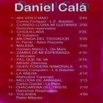 Con temas propios, primicias y versiones de diferentes autores, Daniel Calá ha grabado varios discos en Argentina, en Madrid y en Galicia, con músicos de indiscutible calidad y buen gusto.