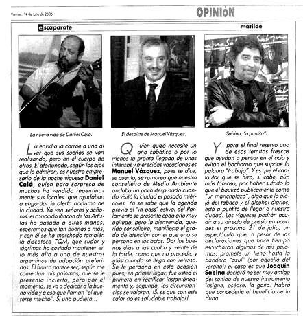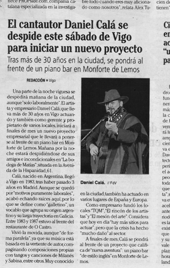 Bienvenidos a la Galería de imágenes de algunos medios de comunicación que publicaron o emitieron noticias de los locales ocio-culturales o de los conciertos de Daniel Calá.